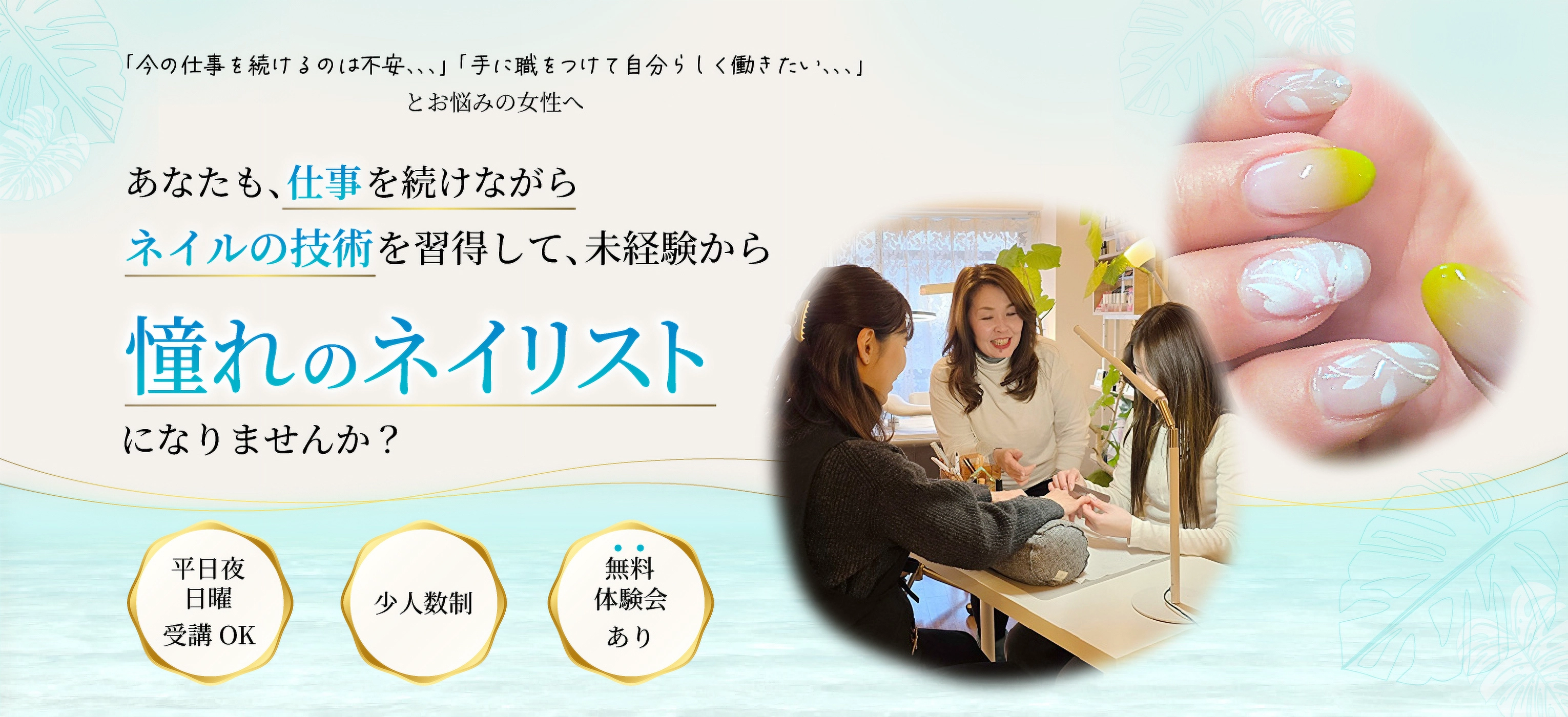 なぜ、未経験から「即戦力のネイリストとしてお仕事できるのか」。ぜひ、続きをお読みください。